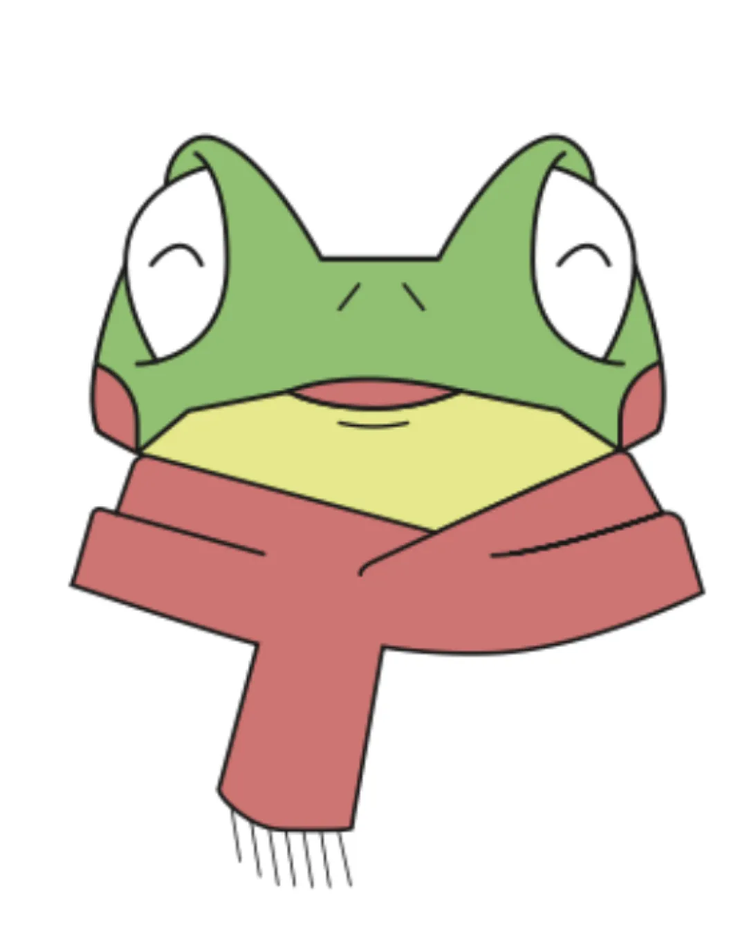 No inappropriate or unintended symbols detected. Frog and scarf motif is clear.