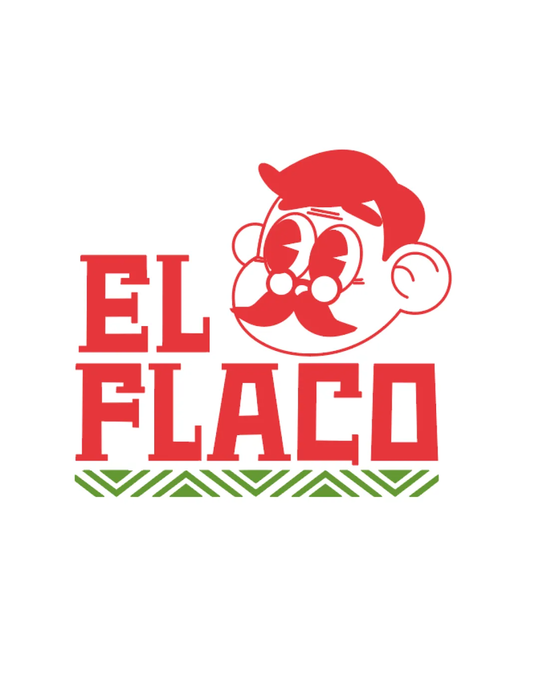 Pattern below 'FLACO' risks making the lower part of the composition feel bottom-heavy.