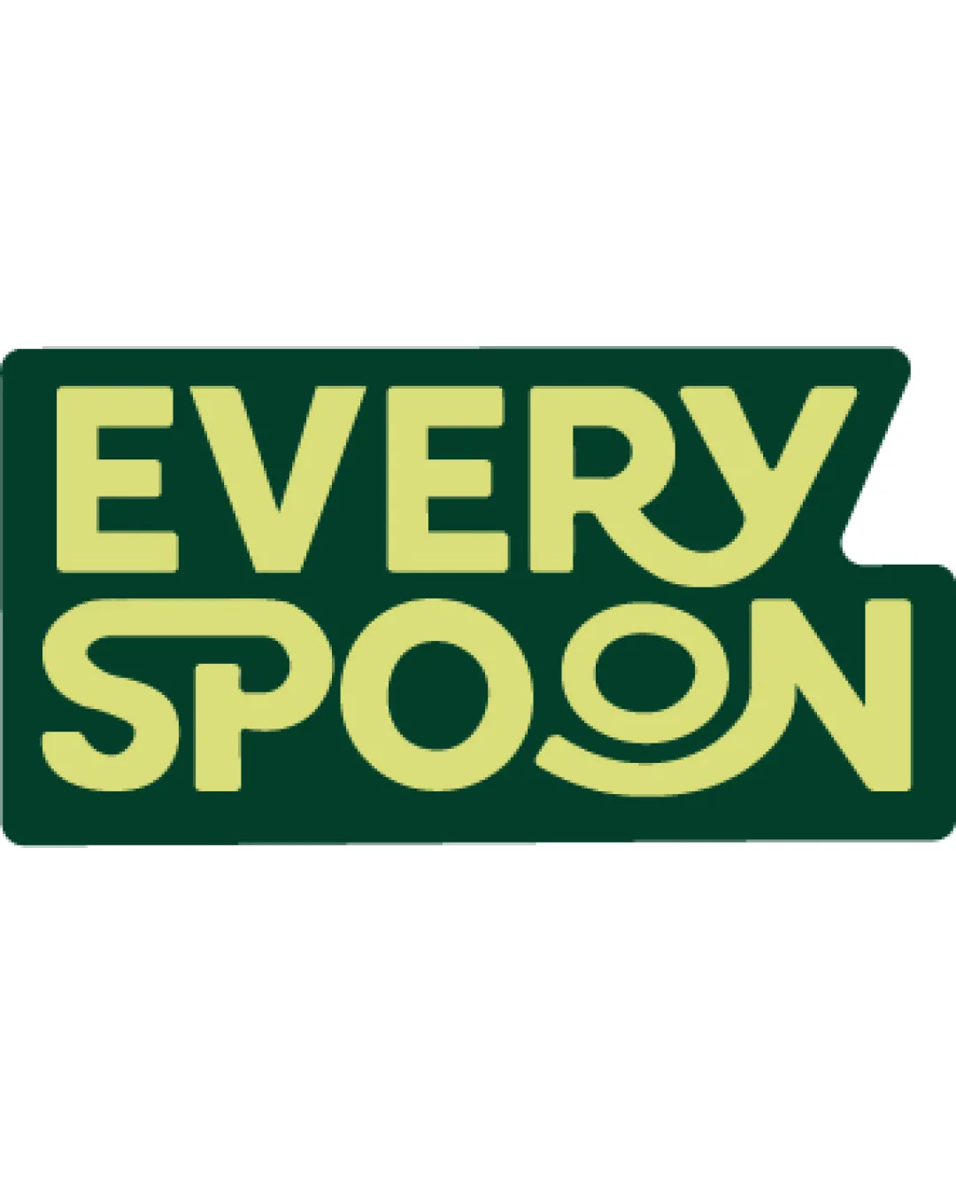 Stylistic treatment of 'EVERY' and 'SPOON' brings a proportional feel.