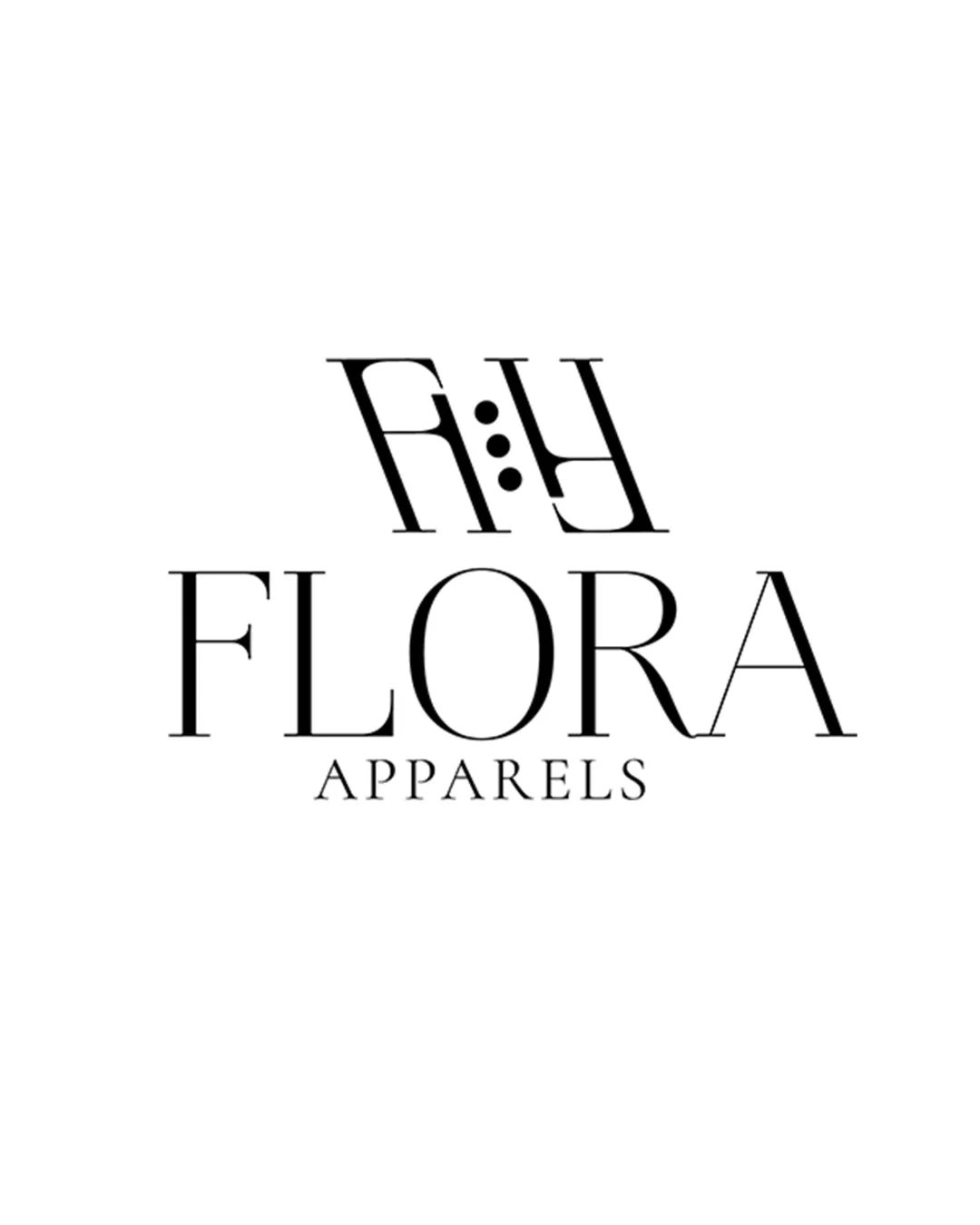 The wordmark 'FLORA APPARELS' is highly readable due to the spacious serif font.