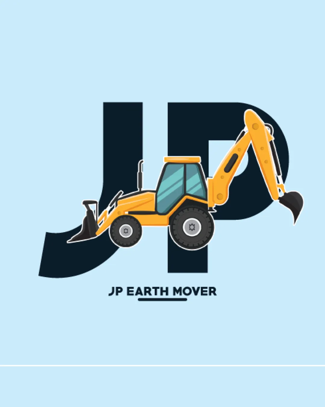Some overlap between the excavator and 'JP' slightly distracts from the letters, especially at small sizes.