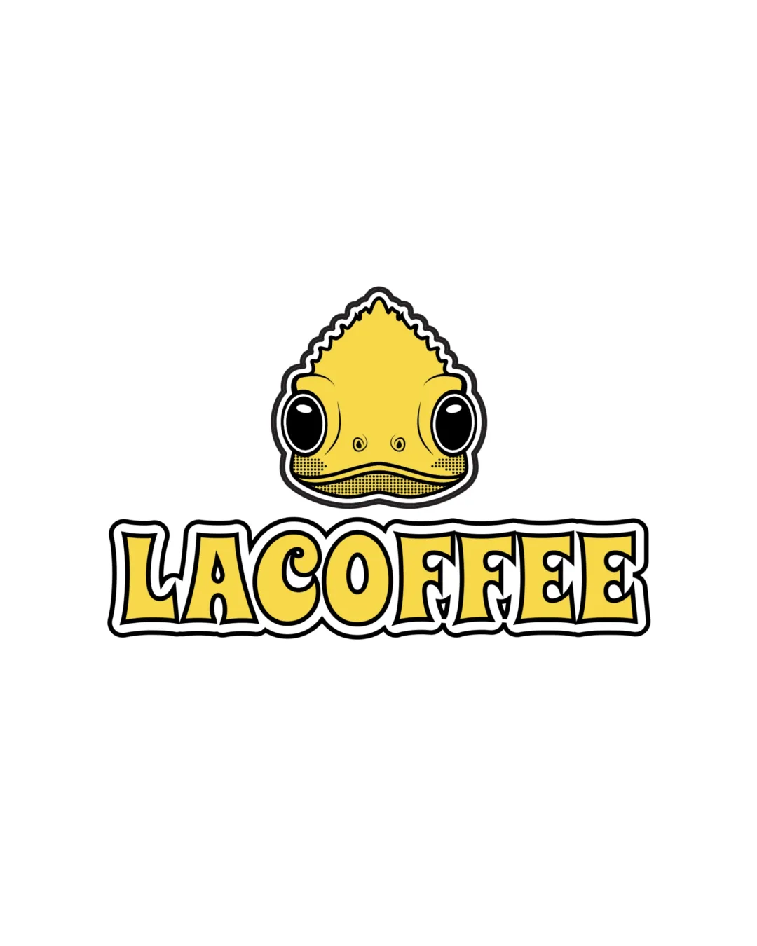 The text 'LACOFFEE' is very readable with a bold and fun font.