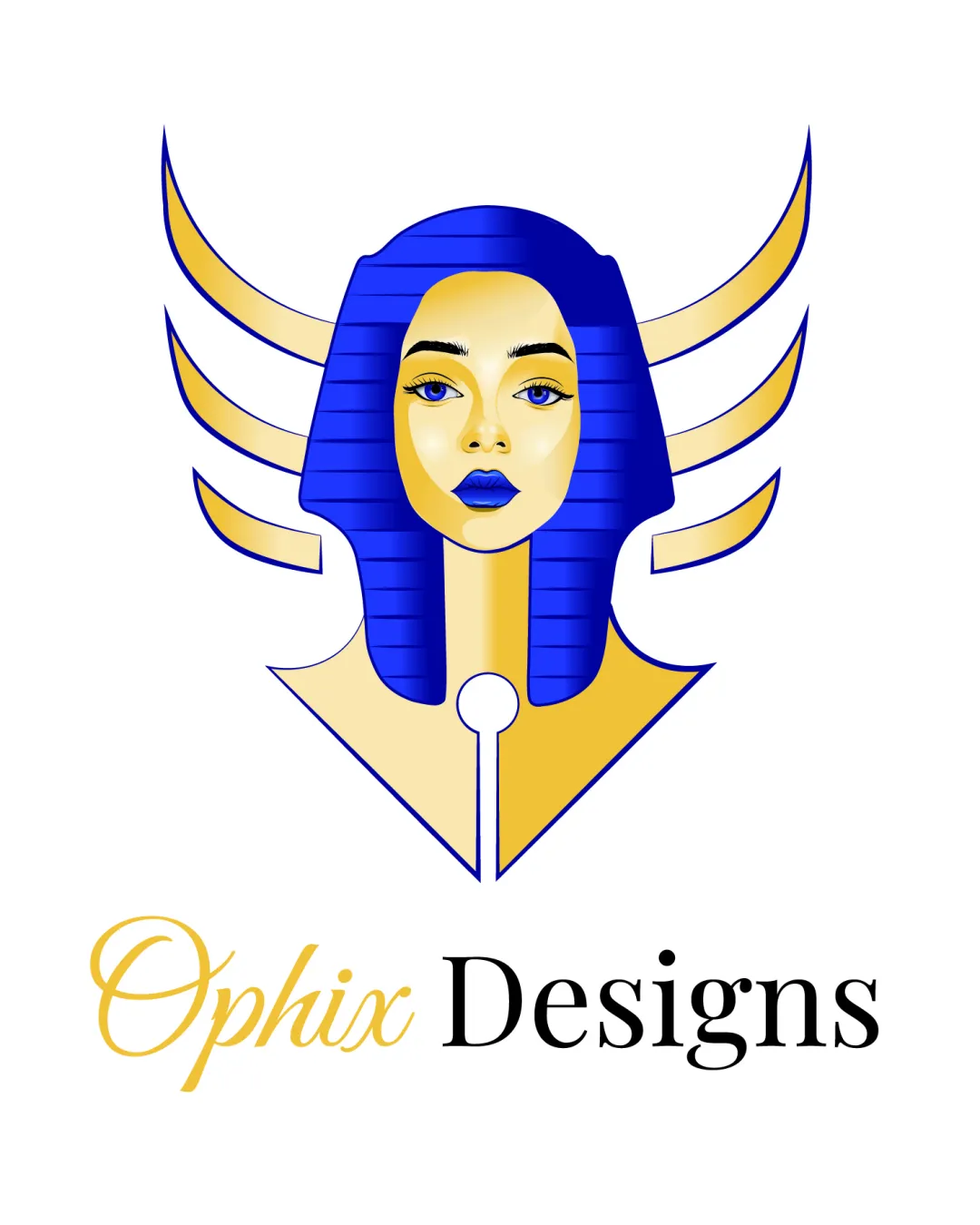 Creative fusion of pharaoh imagery and a fountain pen nib offers a unique approach for a design business.