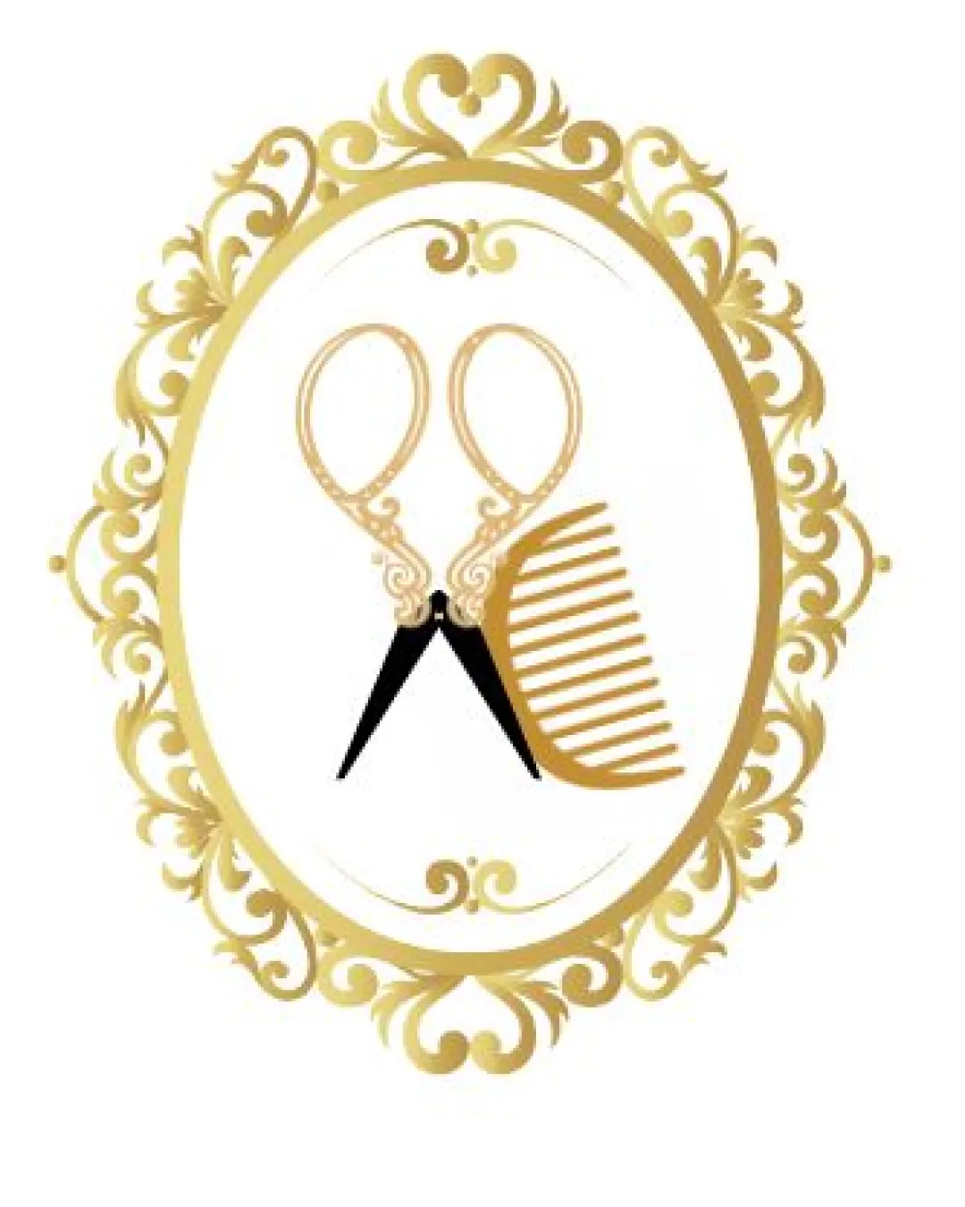 Try it Now!Logo review of ornate scissors and comb inside a gold decorative ..