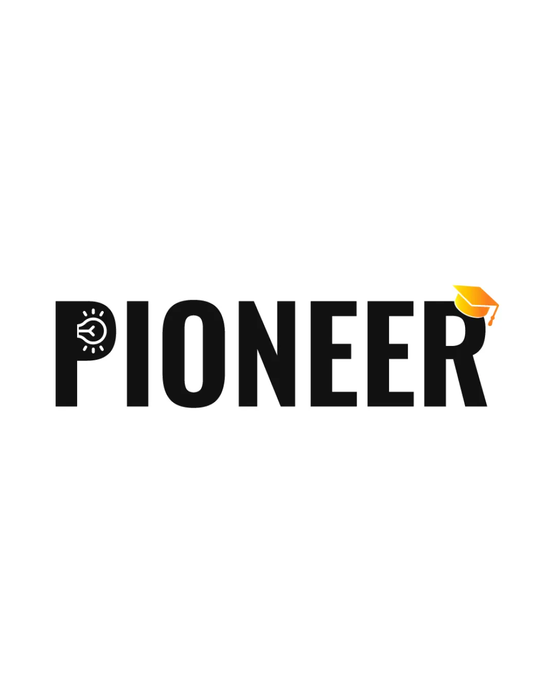The bright graduation cap draws attention away from the rest of the logo, slightly tipping visual weight toward the right.