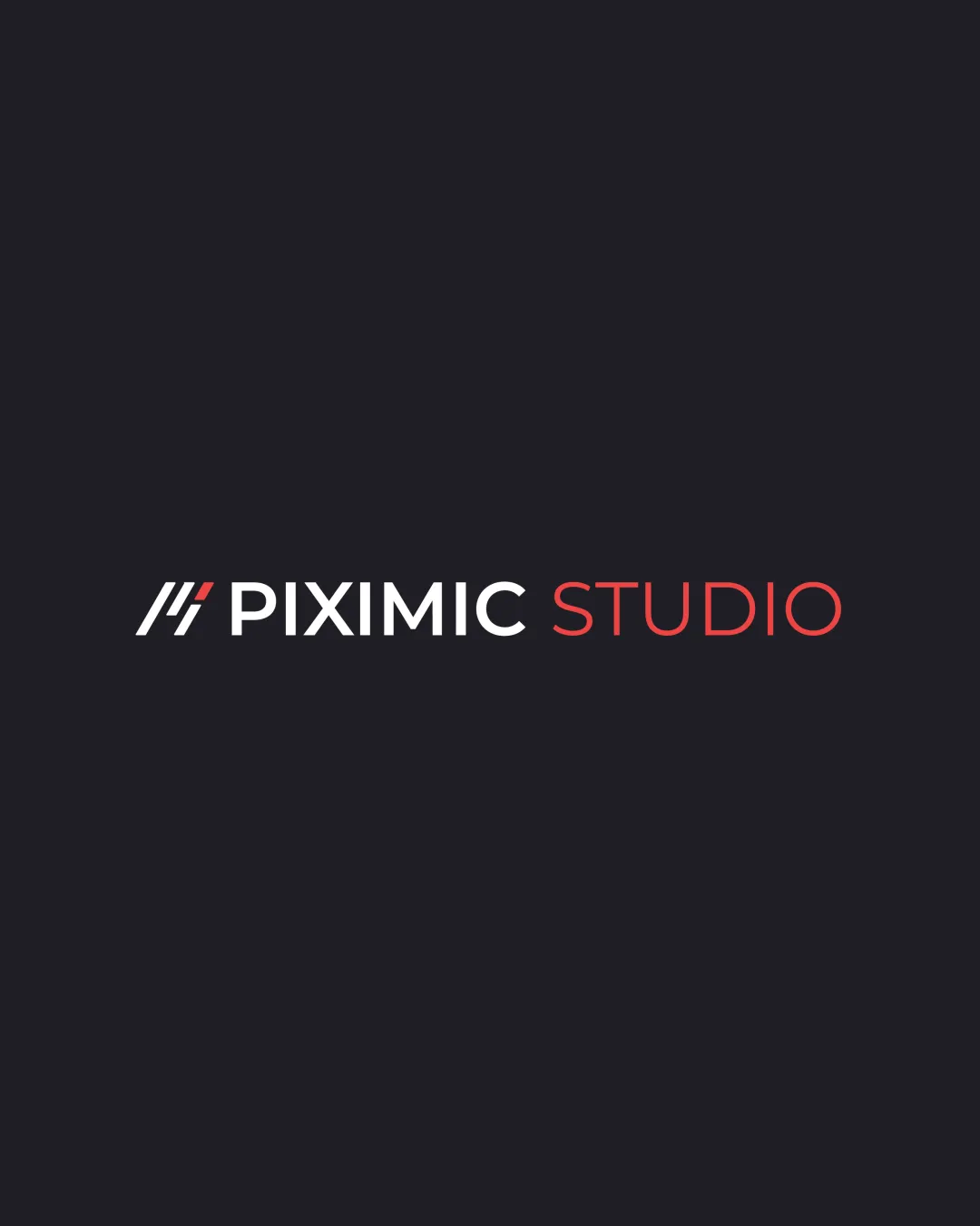 Red color for 'STUDIO' provides visual differentiation from 'PIXIMIC', but still maintains legibility.