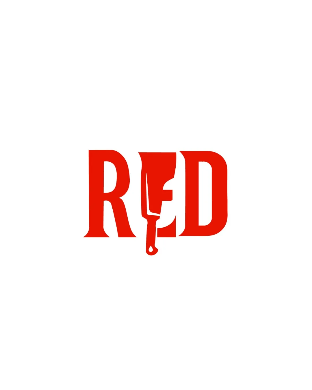 The cleaver visually ties directly to food-related or butchery industries, matching the word 'RED' (possibly referencing meat).