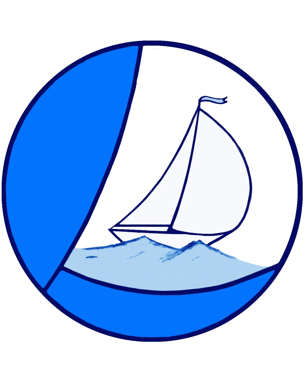 Try it Now!Logo review of sailboat on waves inside a circular badge