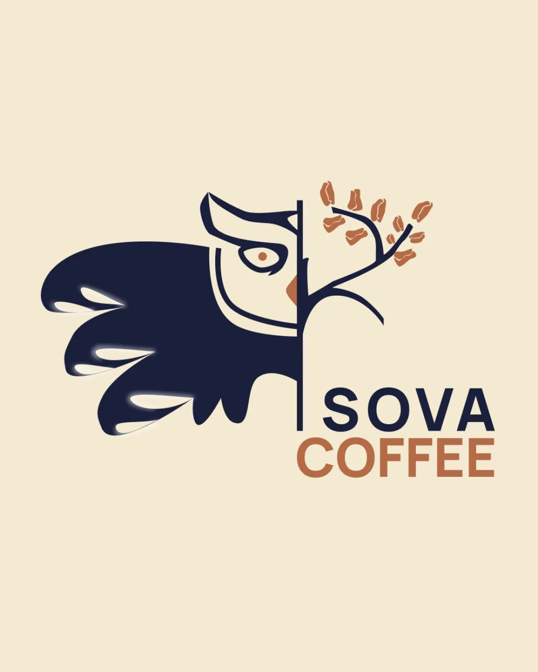 Creative dual representation—owl and coffee plant merge into a single emblem.