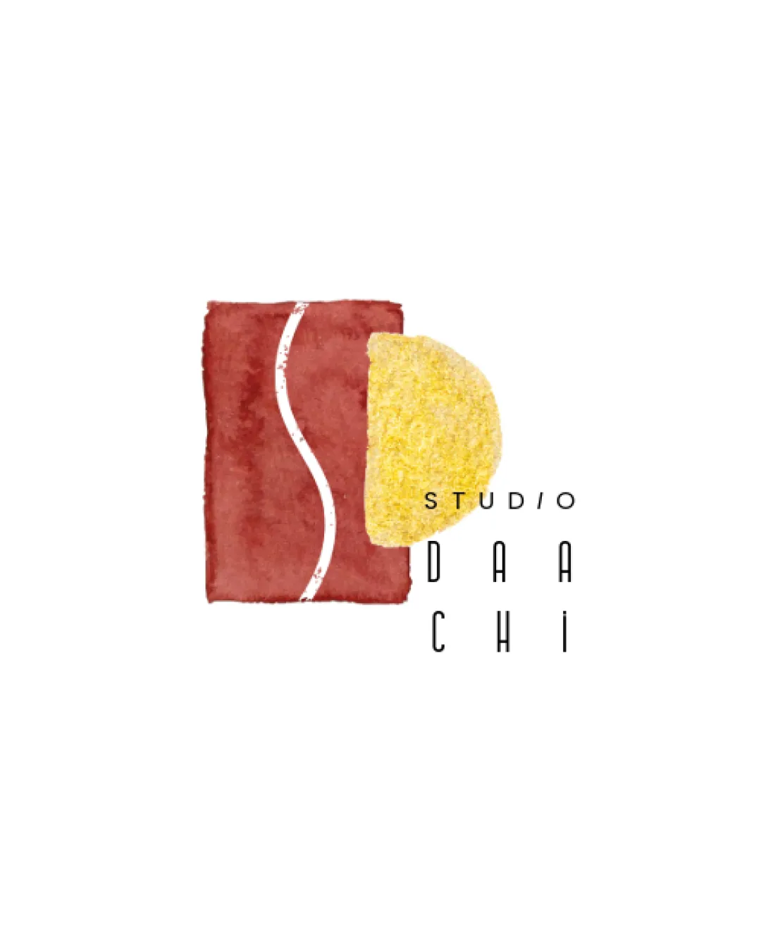 The split arrangement of 'STUDIO' and the vertical stacking of 'DAACHI' may cause slight confusion at small sizes or rapid glances.