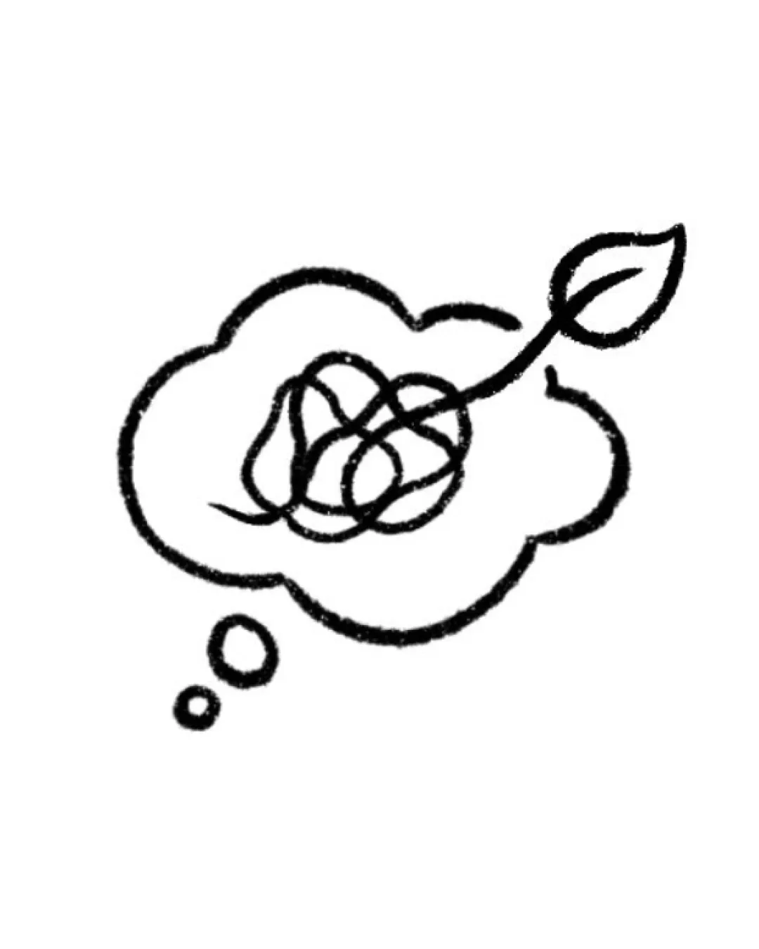 Try it Now!Logo review of Thought bubble with a tangled line and a leaf
