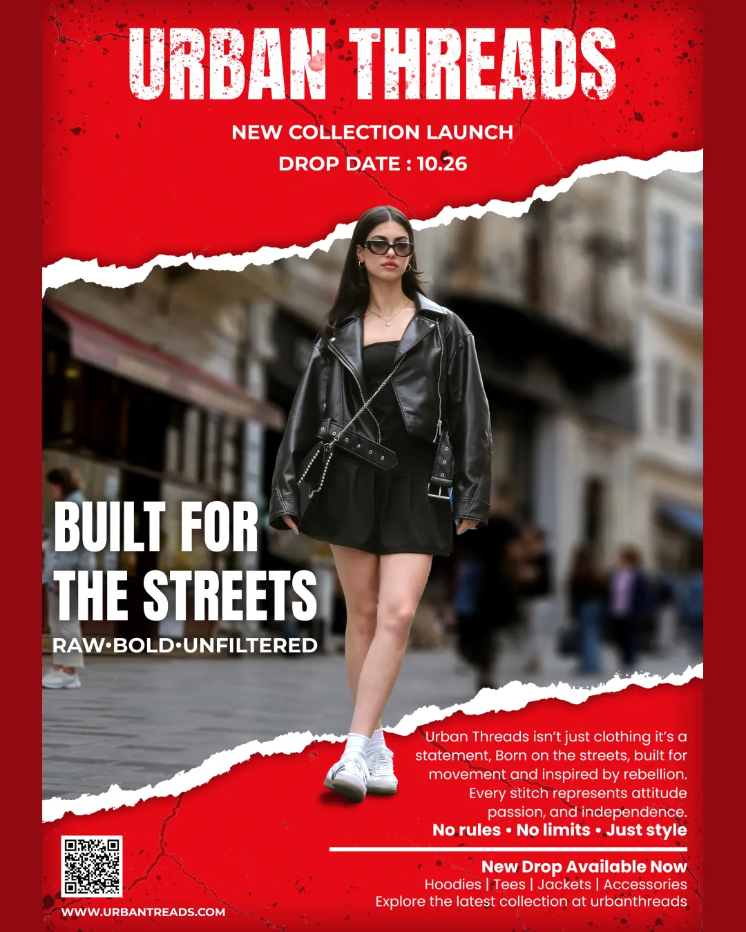 Red, black, and white contrast powerfully and evoke strong street and fashion vibes.