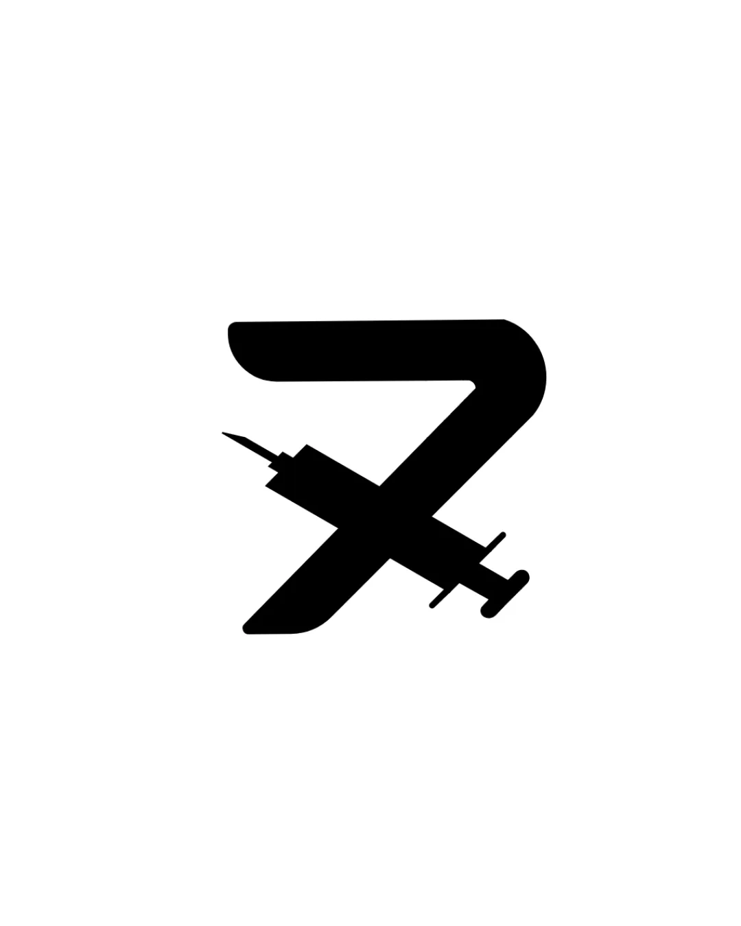 Fine details of the airplane, particularly the tail and nose, could blend into the 'Z' or become illegible at very small scale (e.g., embroidery or narrow favicons).